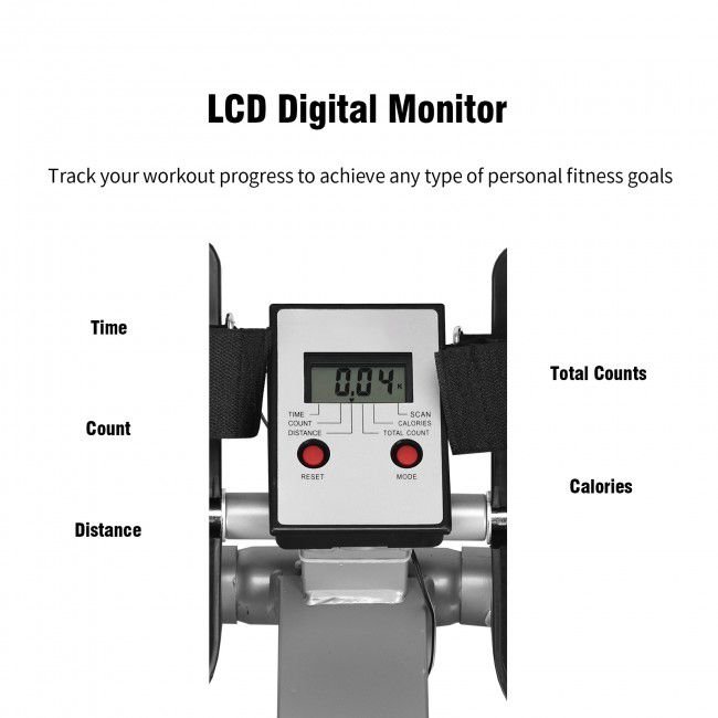 Track Your Progress: With an easy-to-read LCD fitness monitor displaying time, count, total count, distance, calories burned plus it and scans, you can customize your workout to reach your Goal. In addition, slip-resistant, comfortable handles provide additional control for your rowing exercise.