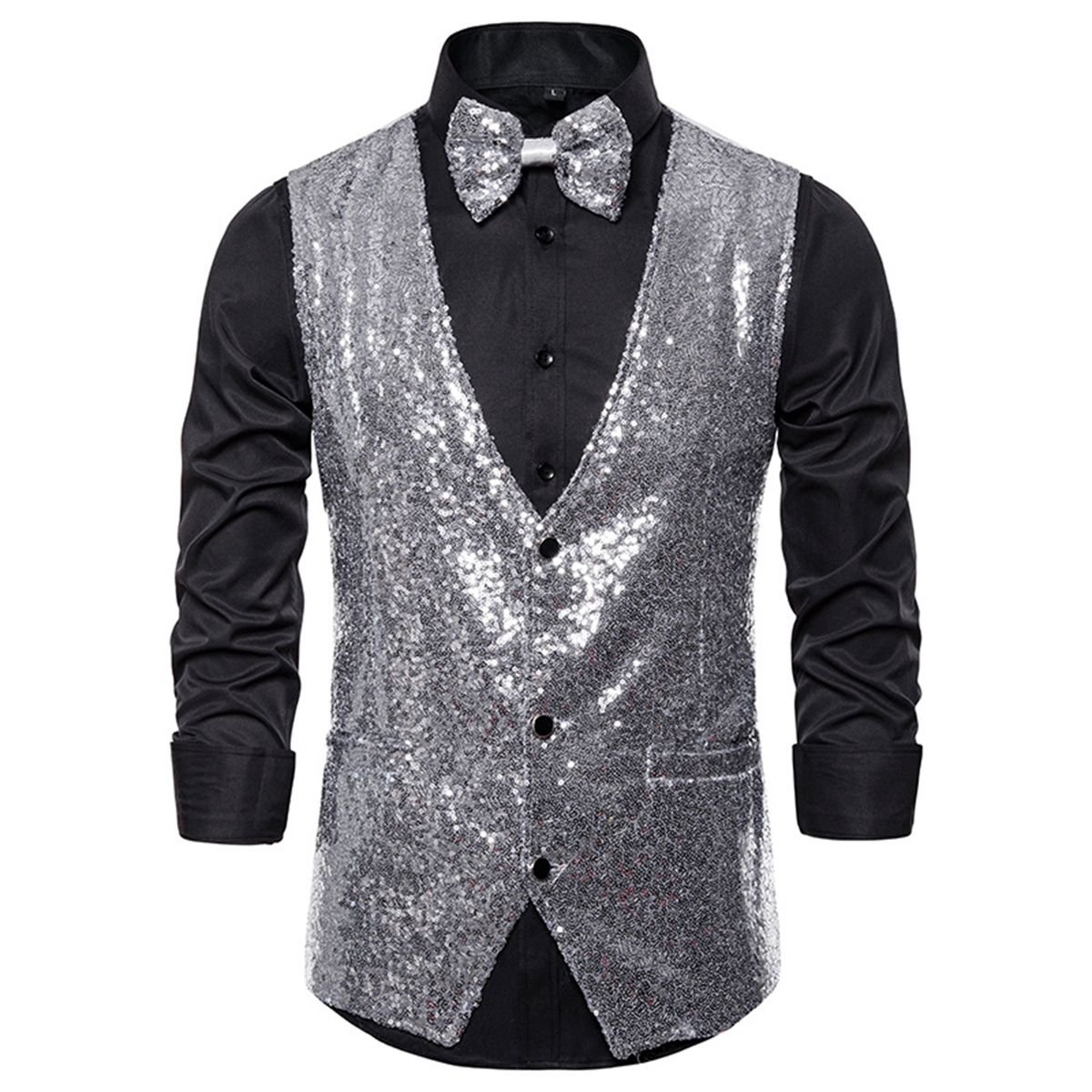 Package Includes: 1*sequin vest+1* matching bow tie.