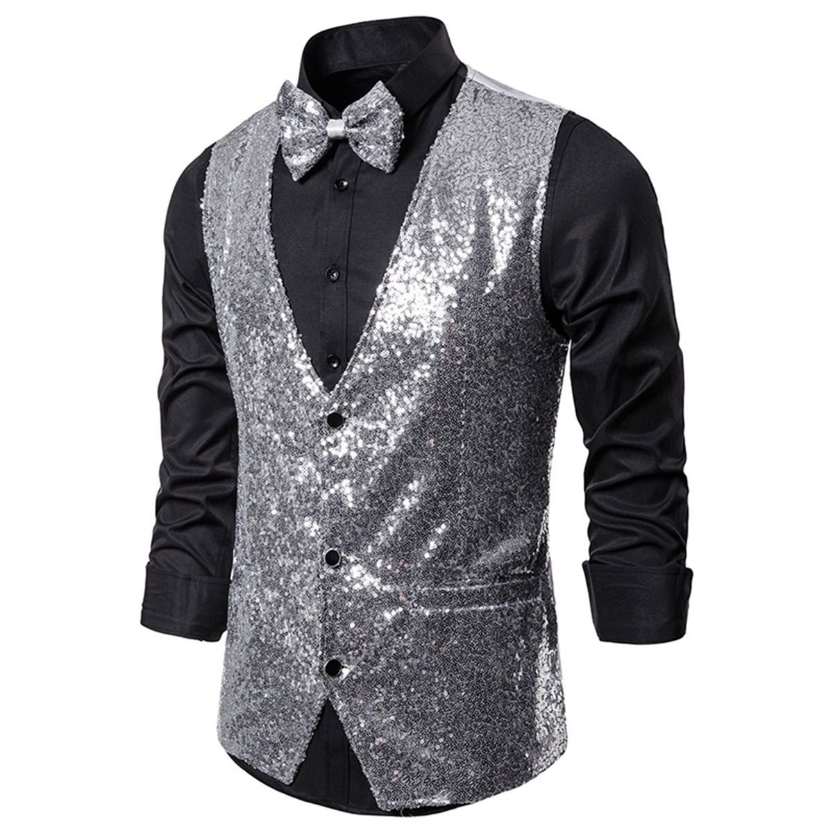 Men's Sequin Vest Shiny Suit Vest V-neck Party Dress Men's Sequin Vest Shiny Suit Vest V-neck Party Dress Men's Sequin Vest Shiny Suit Vest V-neck Party Dress