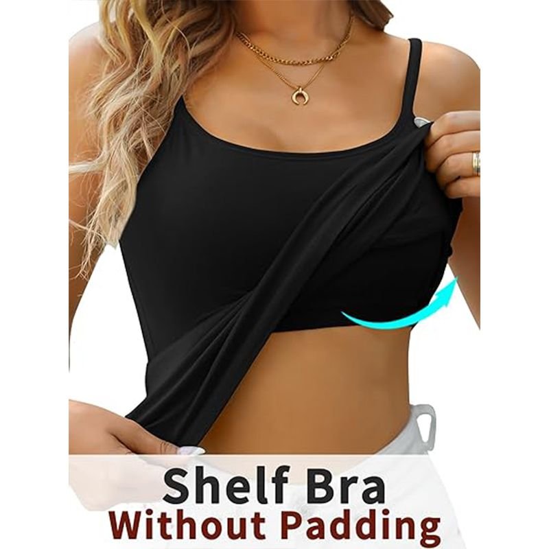 SHELF BRA WITHOUT PADDING: The tank top for women with built in shelf bra and inserted elastic bands provide slight support and moderate coverage.