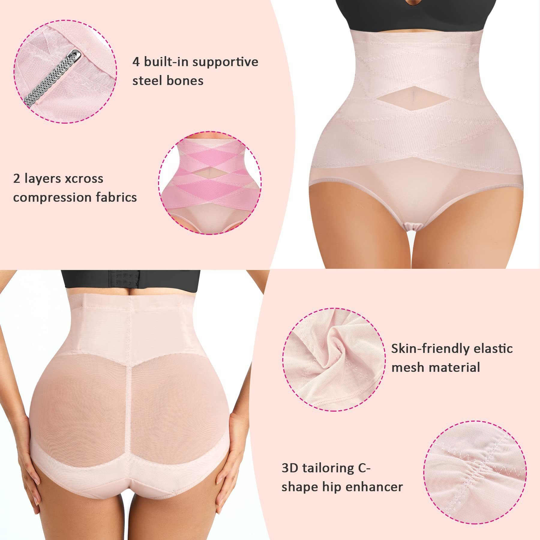 360° SHAPING & STAY WELL:the control panty whole midsection part are 2-layer stretchy fabrics to provide highest compression on belly/waist/back,4 spiral steel bones apart keep it always stay in right place,no roll down and shape you perfectly all the time.